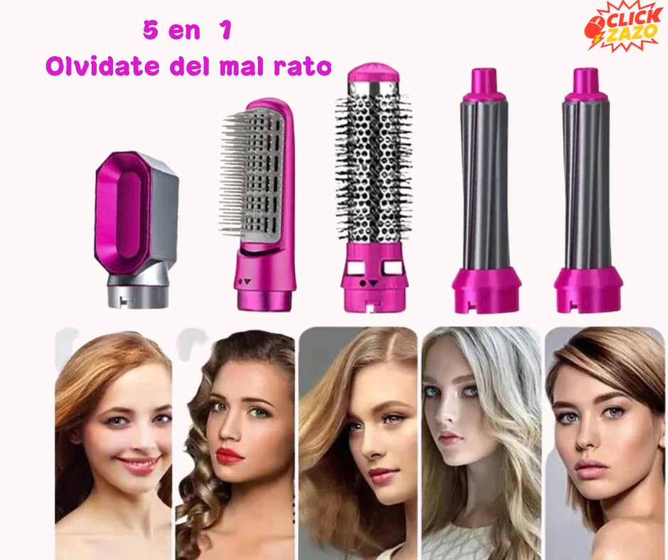 En Clickzazo te traemos el 🔥 Cepillo 5 en 1 más viral del momento: seca, alisa, riza, da volumen y peina — ¡todo en uno solo aparato y sin frizz!